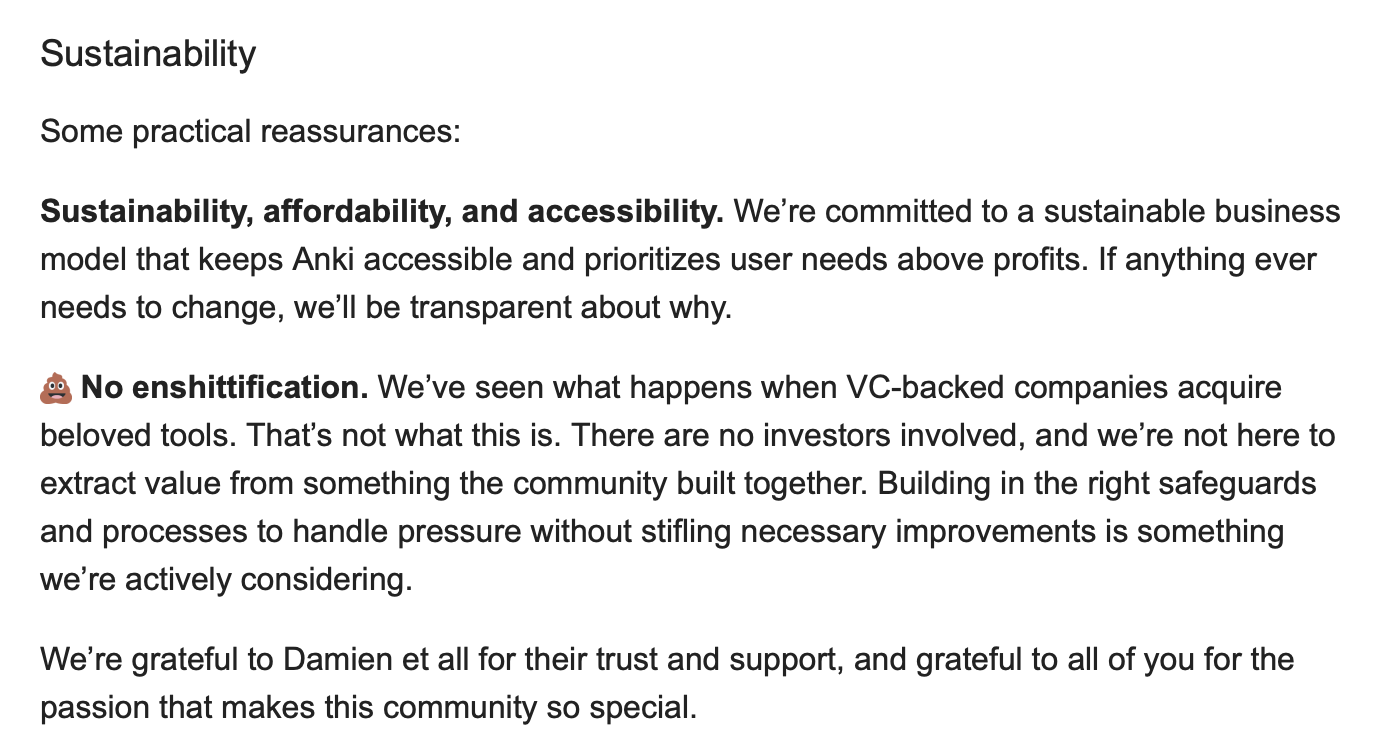 Ankihub has committed to upholding Anki’s principles (open-source, genuinely useful, user customisability), however only time will tell how well this holds up.