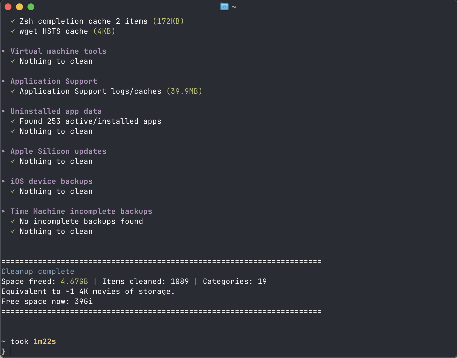 Mo is a CLI tool that quickly and thoroughly clears up storage. The first time I ran it I cleared around 22gb worth of caches and other files I didn’t need.