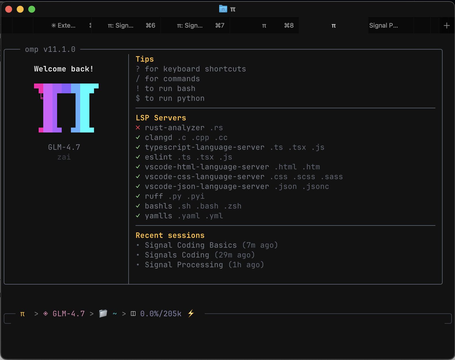 The only downside is that because the implementation is minimal, the performance of the GLM-4.7 model i’m currently using is subpar compared to the refined harness of Claude Code and others. This should change over time once I start improving the prompting and other workflows, but for now I still use Claude Code and Gemini CLI for complex tasks.