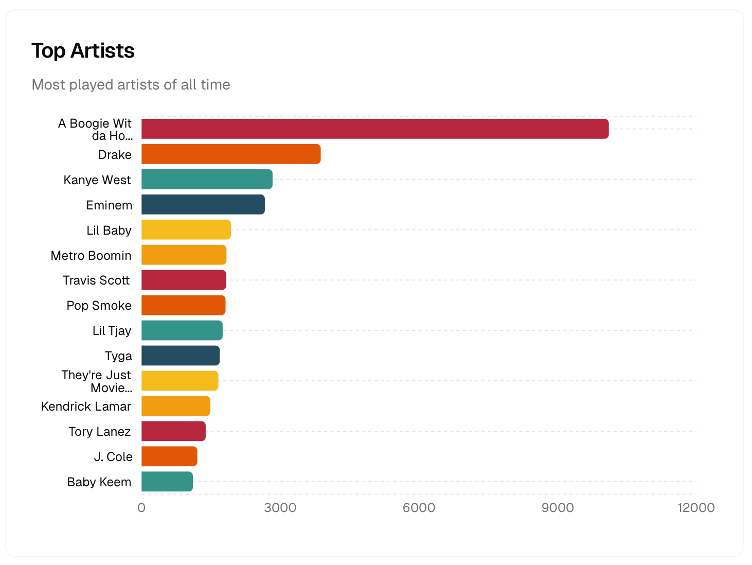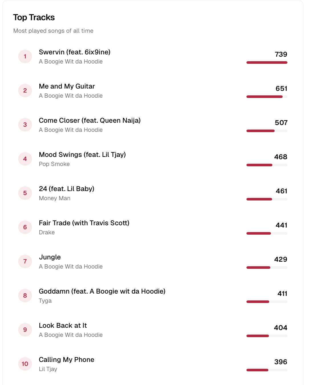 A Boogie has consistently been on the top of my Spotify Wrapped (except 2025) but I was pretty surprised by just how many more songs I’ve listened to of his over other artists.