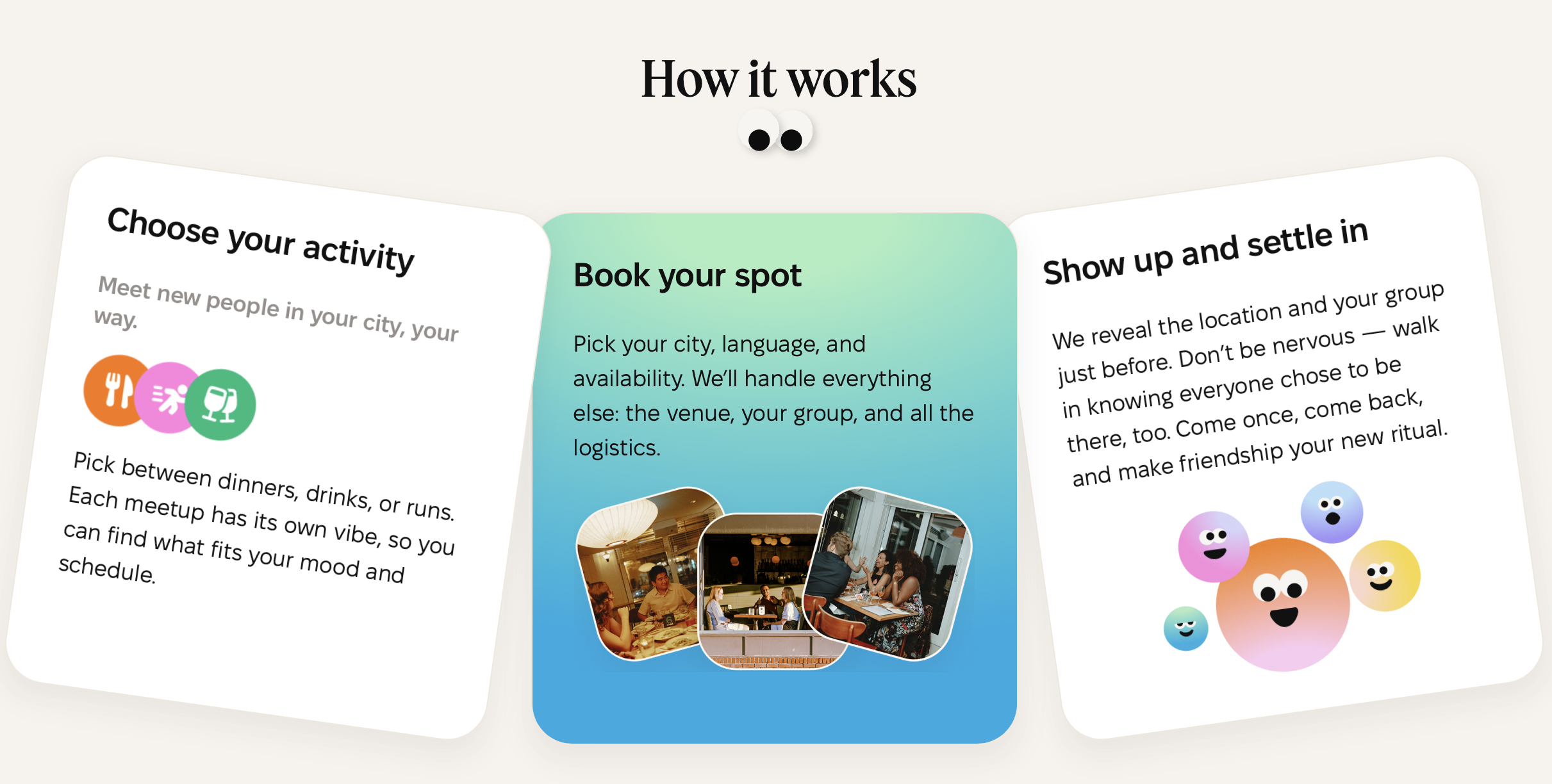 Timeleft is a social gathering app that creates meetups between you and 5 strangers.